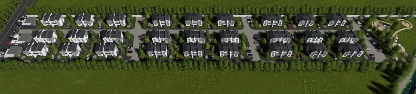 - Internal road network with pedestrian-friendly design and generous parking;